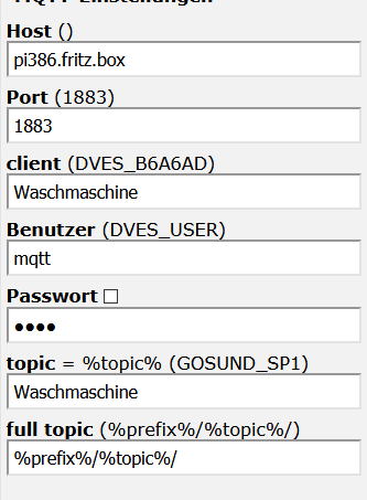 Host = IP von RPi (Homebridge und Mosquitto)