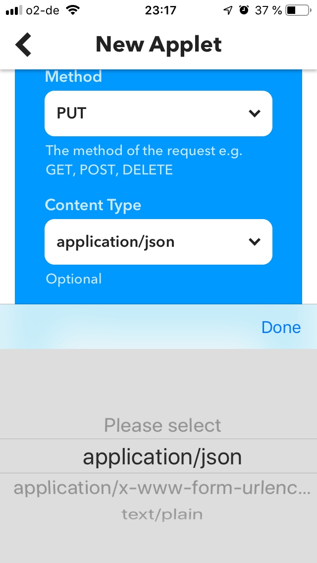Ich möchte gerne einen Sensor, der nur über IFTTT verfügt mittels Webhook einen Schalter in HomeKit (über das Homebridge-http-Webhooks-Plugin) schalten lassen.