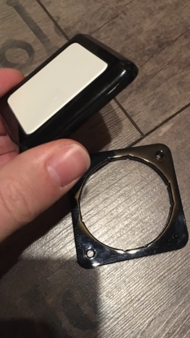 Das schöne sind die Abstandsrahmen, sodass auch noch ein bestehender Schalter darunter Platz hätte. Hier habe ich mal einen Anstandshalter verwendet.