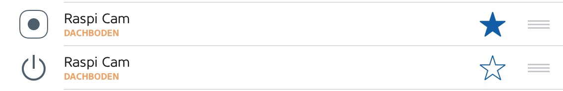 Alles anzeigen{ "platform": "CameraUI", "debug": false, "videoProcessor": "ffmpeg", "cameras": [ { "name": "Raspi Cam", "active": true, "videoConfig": { "source": "-f v4l2 -r 30 -s 1280x720 -i /dev/video0", "stillImageSource": "-f v4l2 -r 30 -s 1280x720 -i /dev/video0", "maxBitrate": 1024, "maxStreams": 2, "maxWidth": 1280, "maxHeight": 720, "maxFPS": 30, "vcodec": "h264_omx", "debug": true } }, ], "gui": { "active": true, "username": "admin", "password": "xxxxxxxxxxx", "port": 3000, "wsport": 8100, "debug": false, "removeAfter": false, "secret": "xxxxxxxxxxxx" }Das muesste der Sensor sein fuer motion triggering? Bzw. wenn du MQTT aktiv hast erscheint der mit!