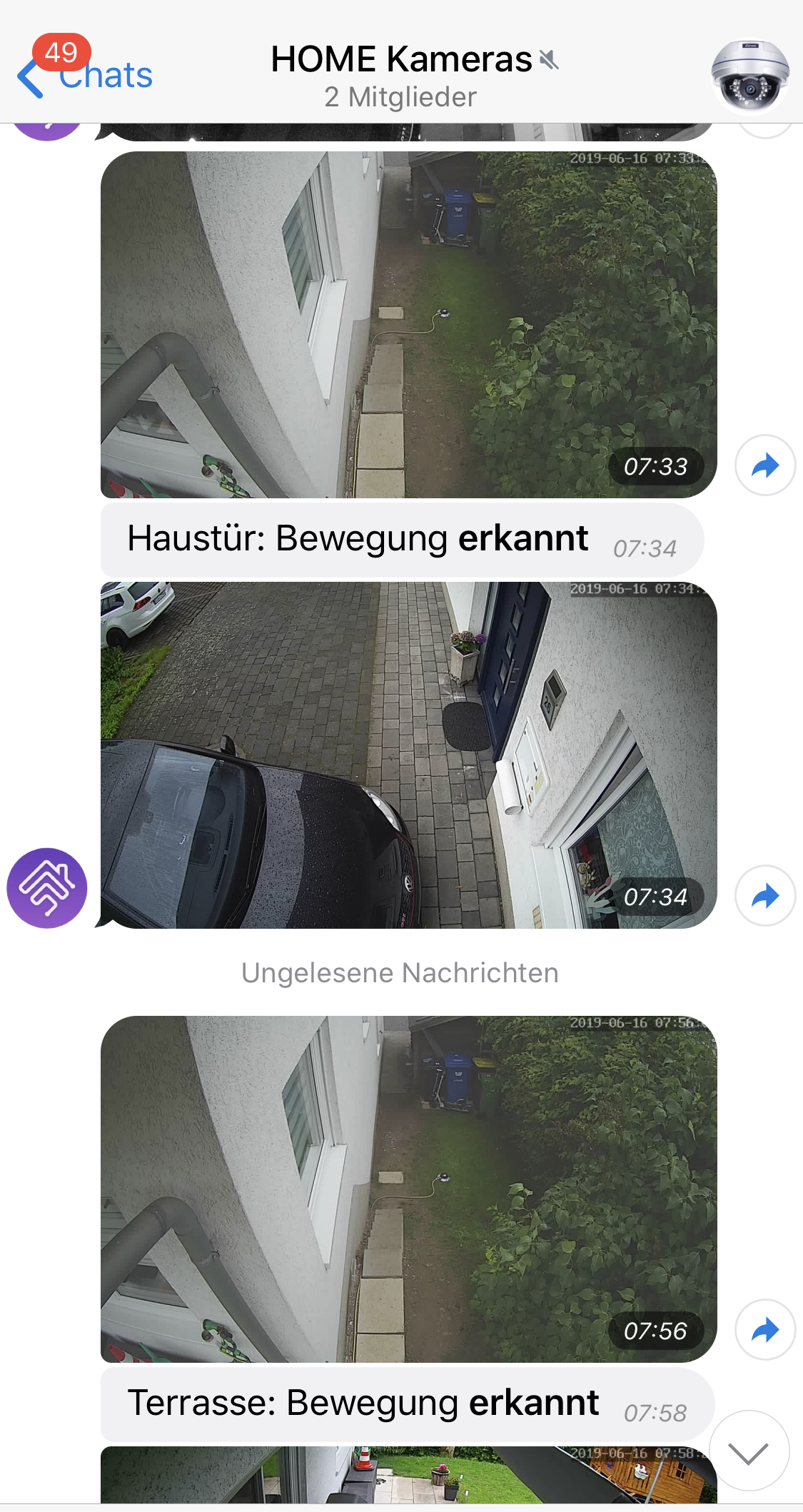 Das Bild zur Garten Dome Kamera kommt nun. Aber nicht die Telegram Push das Bewegung erkannt wurde.