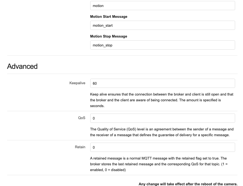 Der selbe Fehler kommt auch wenn eine jpg gesendet werden soll. ("MQTT - recordOnMovement": false,)