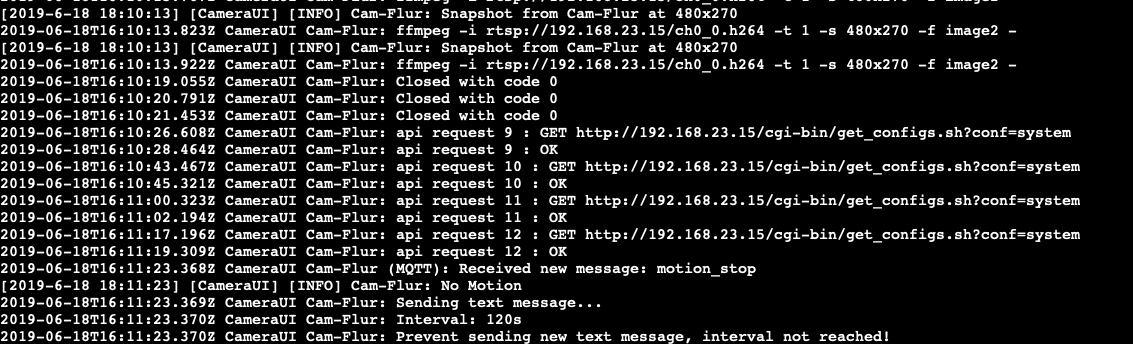 Die letzte Meldung per Telegram von motion_stop kahm gestern gegen 17:30 Uhr seit dem nicht mehr.