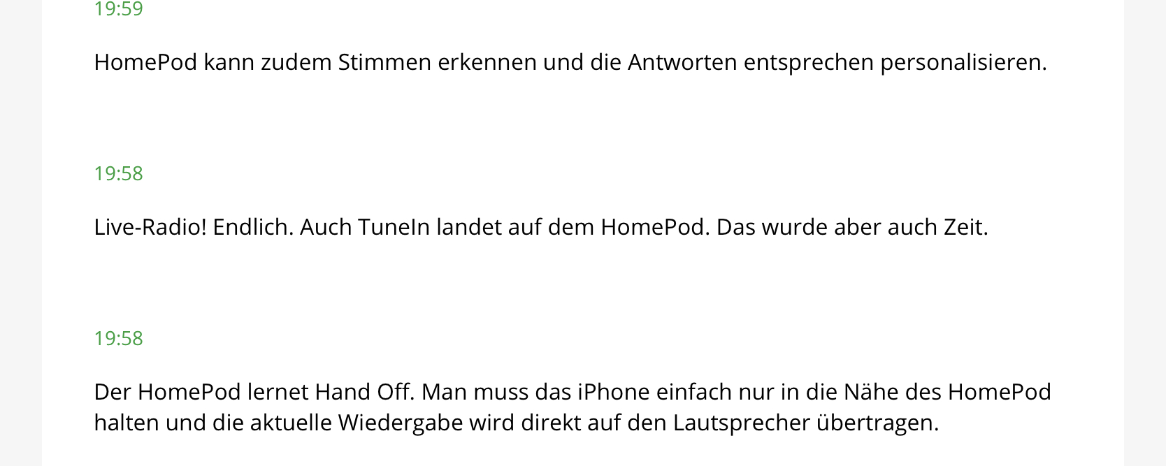 Wenn sich das „eigene Lautstärke verwenden“ darauf bezieht, dass man am Homepod endlich die Lautstärke einstellen kann, ist das ja schon mal was - obwohl sowas ja eigentlich selbstverständlich sein sollte. Geht aber bisher nicht.
