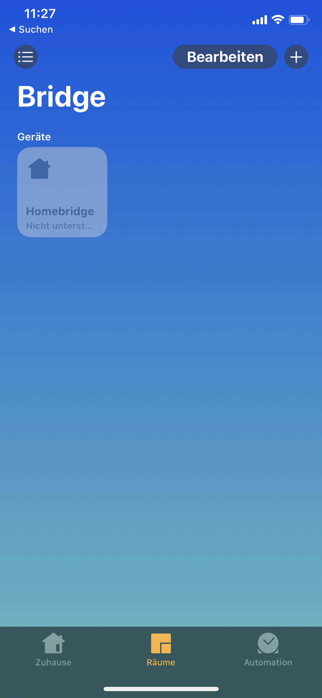 Dort werden alle noch unter Raum Bridges geführt aber dort sind sie aktuell nicht zu sehen. Nur eben diese eine "Bridge" von der Homebridge die dieses Haus aus Symbol hat, wird noch richtig im Raum angezeigt.