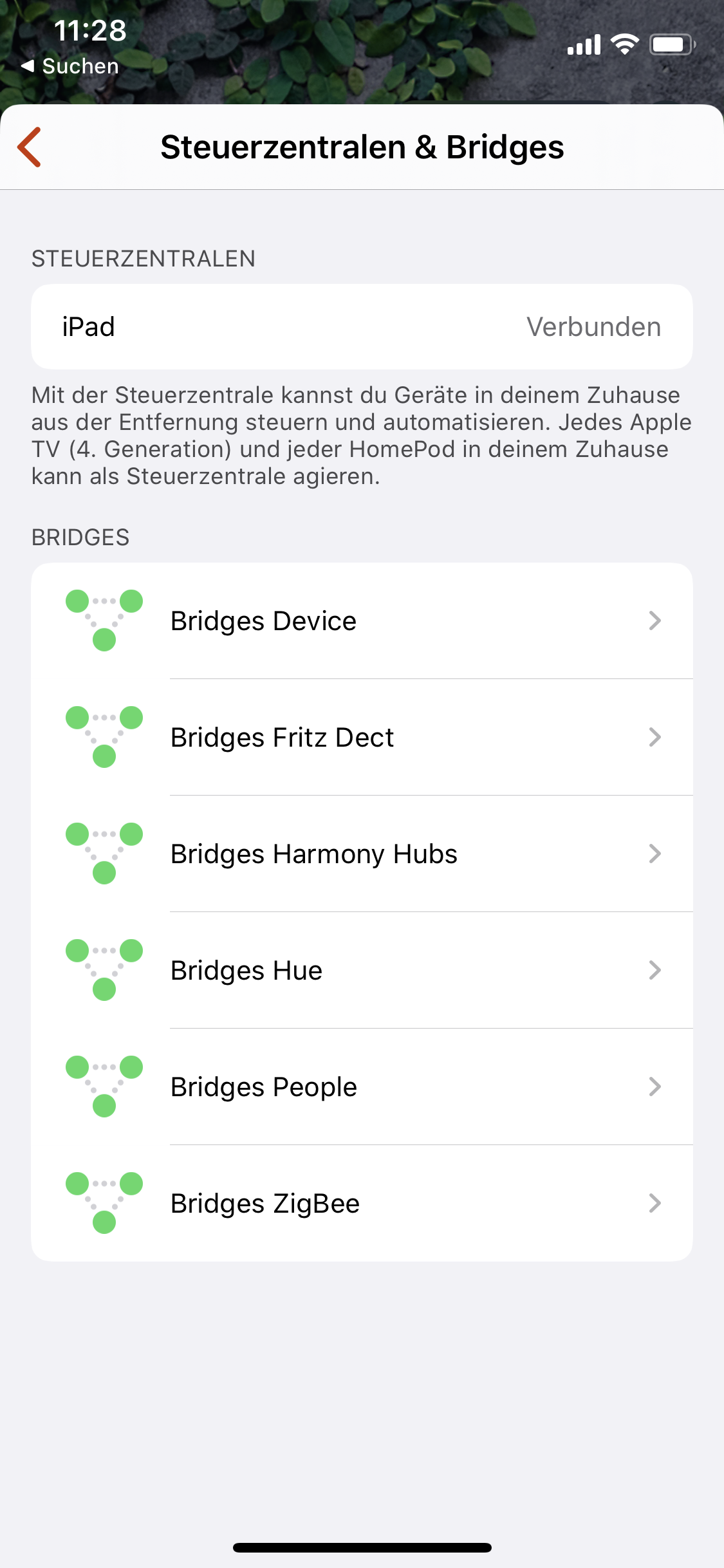 Home -> Zuhause -> oben Links auf das Haus -> Steuerzentrale & Bridges