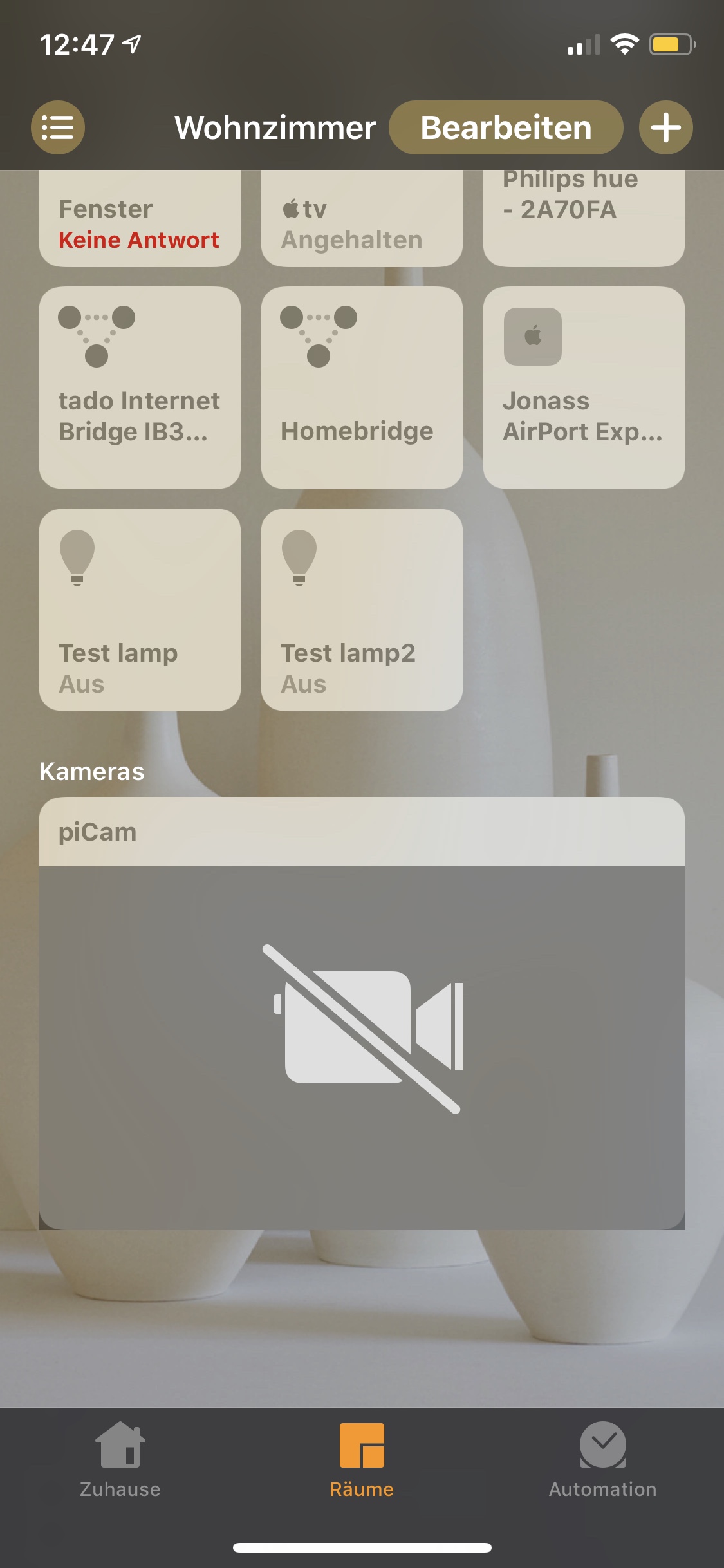 Beim drücken auf die piCam wirft Homebridge direkt den Fehler „FFmpeg exited with code 1“ aus.