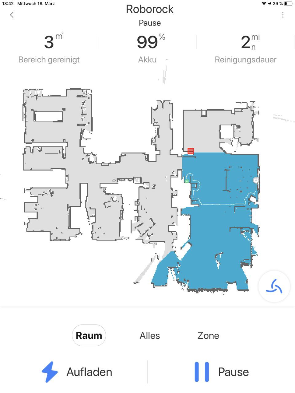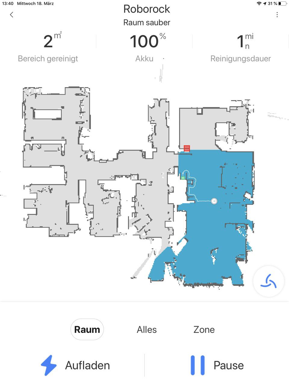 Dann in der Mi App einmal den Cache leeren und den Robo einmal komplett durchfahren lassen, damit er eine neue Karte anlegt. Danach die Räume in der App aufteilen.