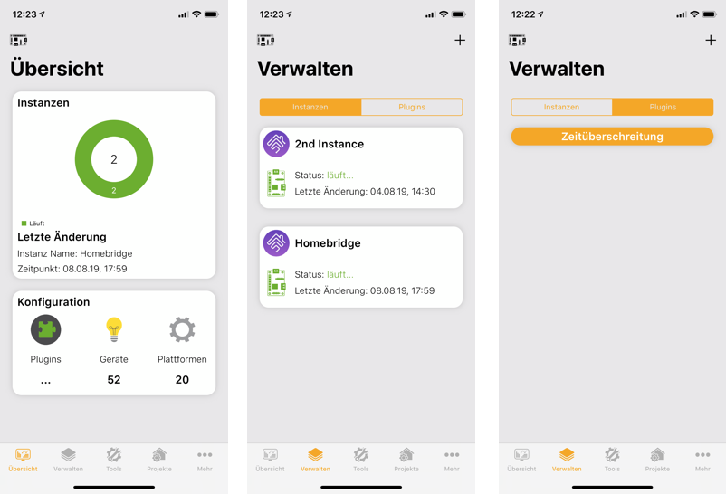 Ansonsten sieht aber alles okay aus und ich gehe davon aus, dass Homebridge richtig mit Homemanager verbunden ist.