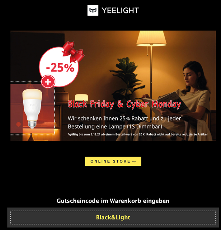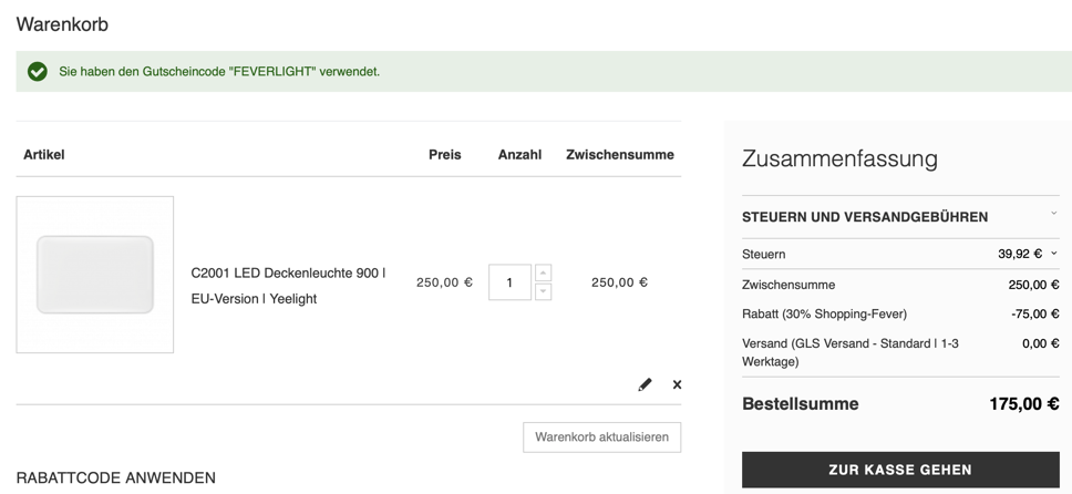 Hmm... Wohl schnell sein. Bei Yeelight im deutschen Shop ist der 30% Rabattcode FEVERLIGHT noch aktiv.