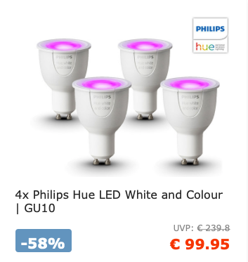 4x Philips Hue LED White and Color Ambiance | GU10 | 16 Mio. Farben