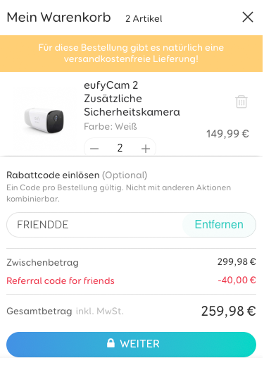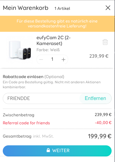Nice, da wurde mir sogar noch ein Rabattcode angezeigt: