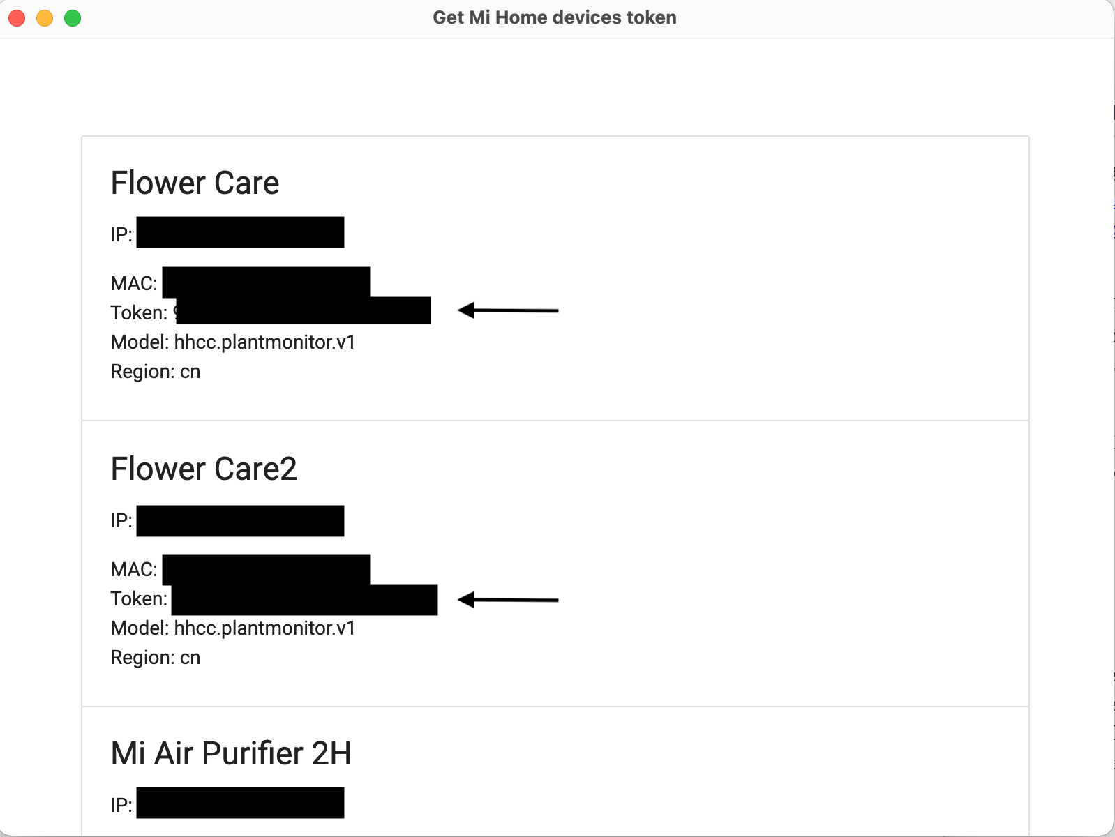 Es gibt eine neue App Get Mi Home devices token von @maxmudjon auf GitHub. Die App logt sich in das Xiaomi-Konto ein und liest aus einer öffentlichen API die Tokens aus. Bei der Eingabe von Accountdaten in fremde Apps ist wie immer Vorsicht angebracht. Es ist jedoch positive zu erwähnen, dass der Quellcode Open Source ist. Dieser lässt aktuell kein zwielichtiges Verhalten des Entwicklers erkennen. Für meinen Air Purifier und Flower Cares klappt es einwandfrei.