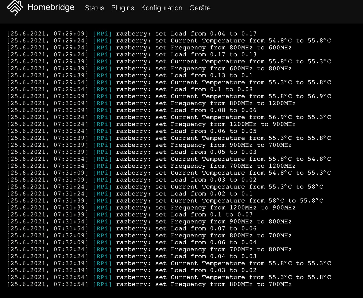 Ich nutze (u.a.) in Homebridge das Plugin Homebridge-rpi zur rudimentären Überwachung des Pi auf dem die Homebridge läuft