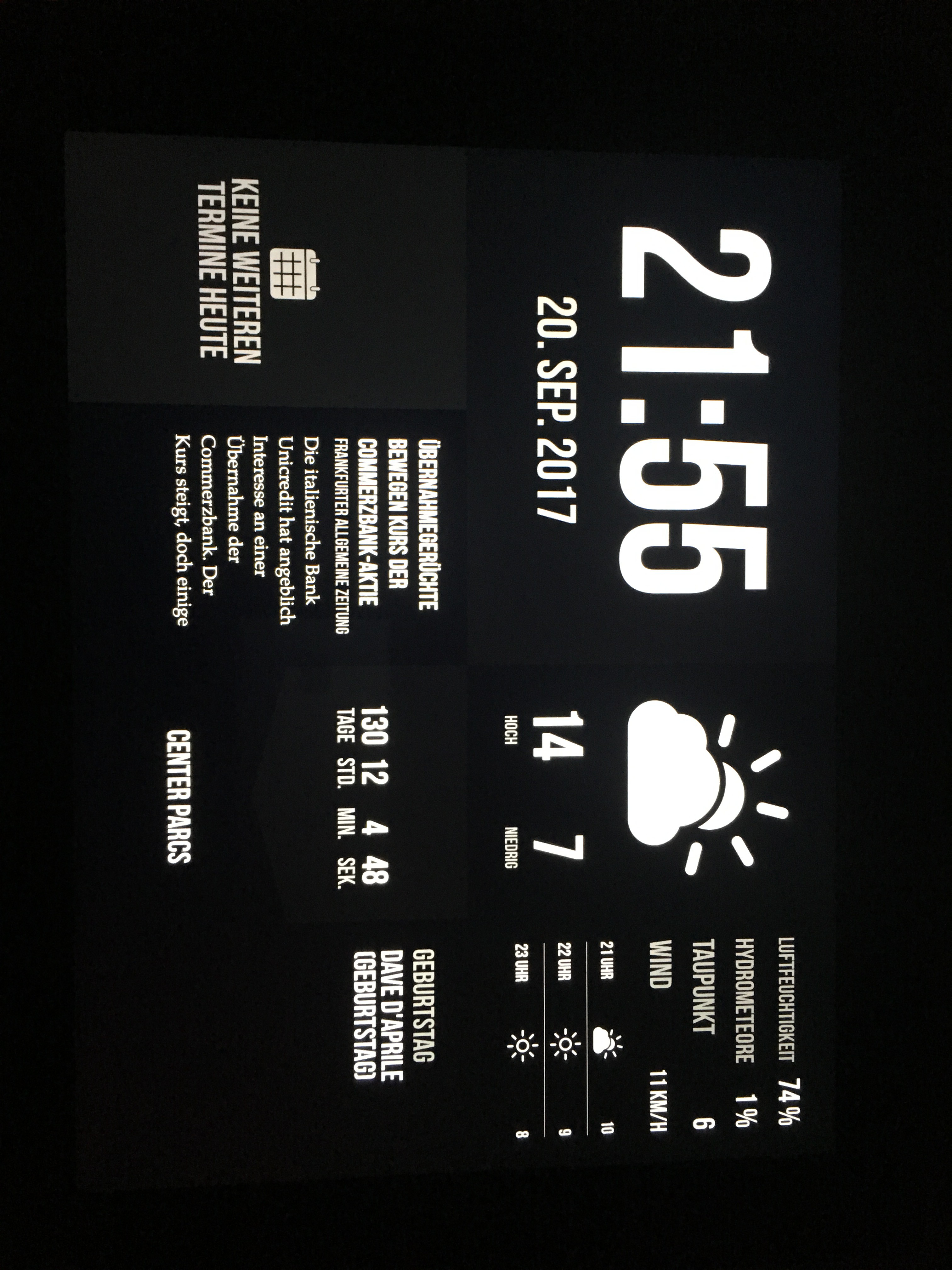 Ich habe folgende App gefunden, die mir Uhrzeit, Kalender, Wetter und Nachrichten anzeigt.