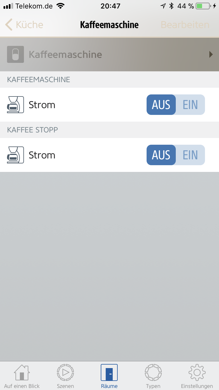 ) zu stoppen.Dieser wird innerhalb des Gerätes "Kaffeemaschine" angezeigt. Zusätzlich zum on/off switch, der eben die ganze Kaffeemaschine an- oder ausschaltet.