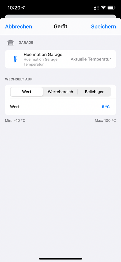 Ich hätte gerne eine Temp-Mitteilung vom Hue Sensor, wenn unter 5° oder über 30°.