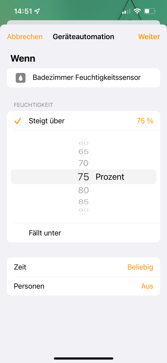 Das erste "Szene oder Geräte festlegen" kannste rauslöschen. Das legt die Home-App standardmäßig da an aber enthält so keine Aktion.