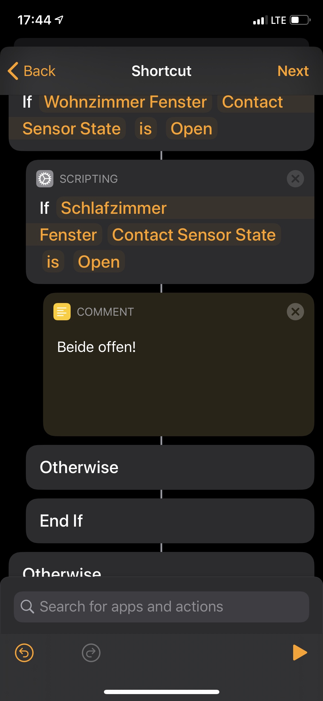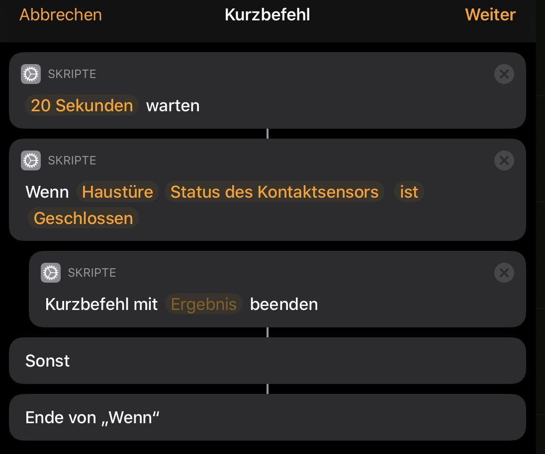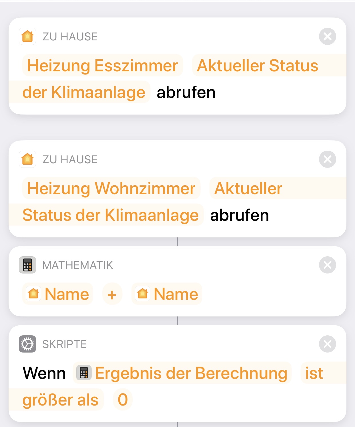 ich beschäftige mich gerade ein bisschen mit der Möglichkeit Automationen per Kurzbefehle zu steuern denn ich denke erst damit wird mein Smart Home richtig interessant. Die Möglichkeit komplexere Bedingungen zu verknüpfen und zu verschachteln finde ich super.
