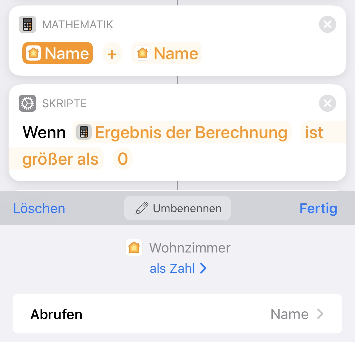 • Ok die erste Hürde. Ich verwende Kurzbefehle auf Deutsch. Wie genau muss ich die Berechnung einrichten?