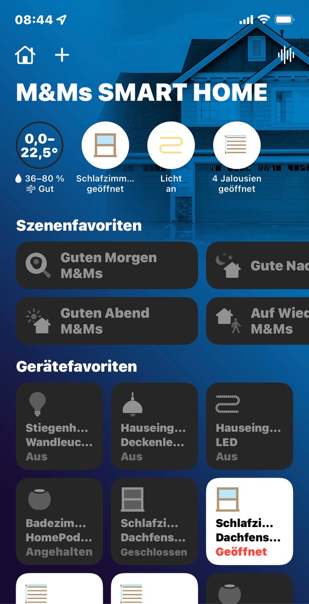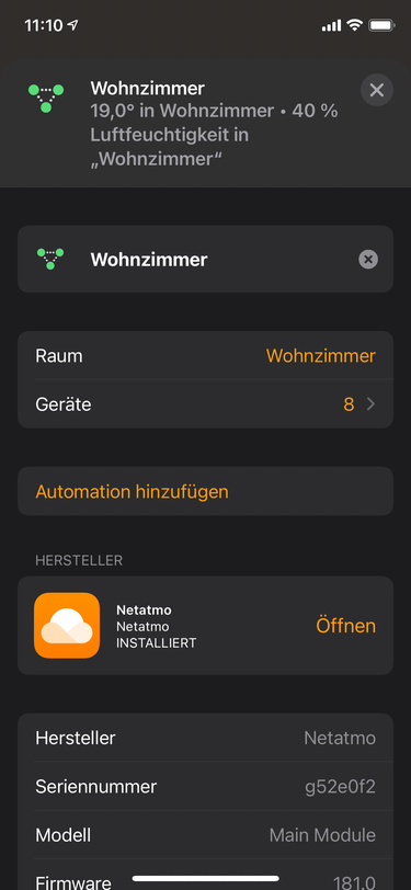 • Was du machen kannst: Blende entweder die Innen- oder die Außenthermometer aus dem Status aus, dann zeigt dir HomeKit schön einen einheitlichen Wert gemittelt aus allen nahe beieinander liegenden Innen- bzw. Außentemperaturen an. Leider kann man nicht beides gleichzeitig anzeigen.