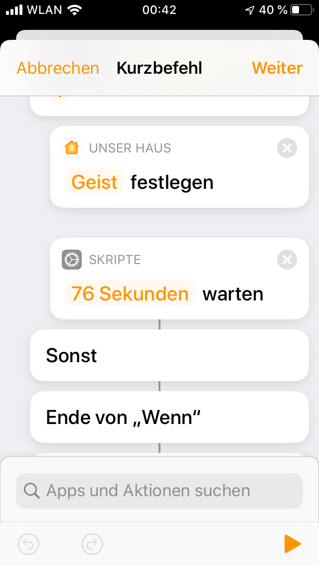 Realisiert habe ich dies mit dem Alexa-Skript, einem Fake-Delay-Switch, dem Cmd-Trigger-plugin und über Kurzbefehle.