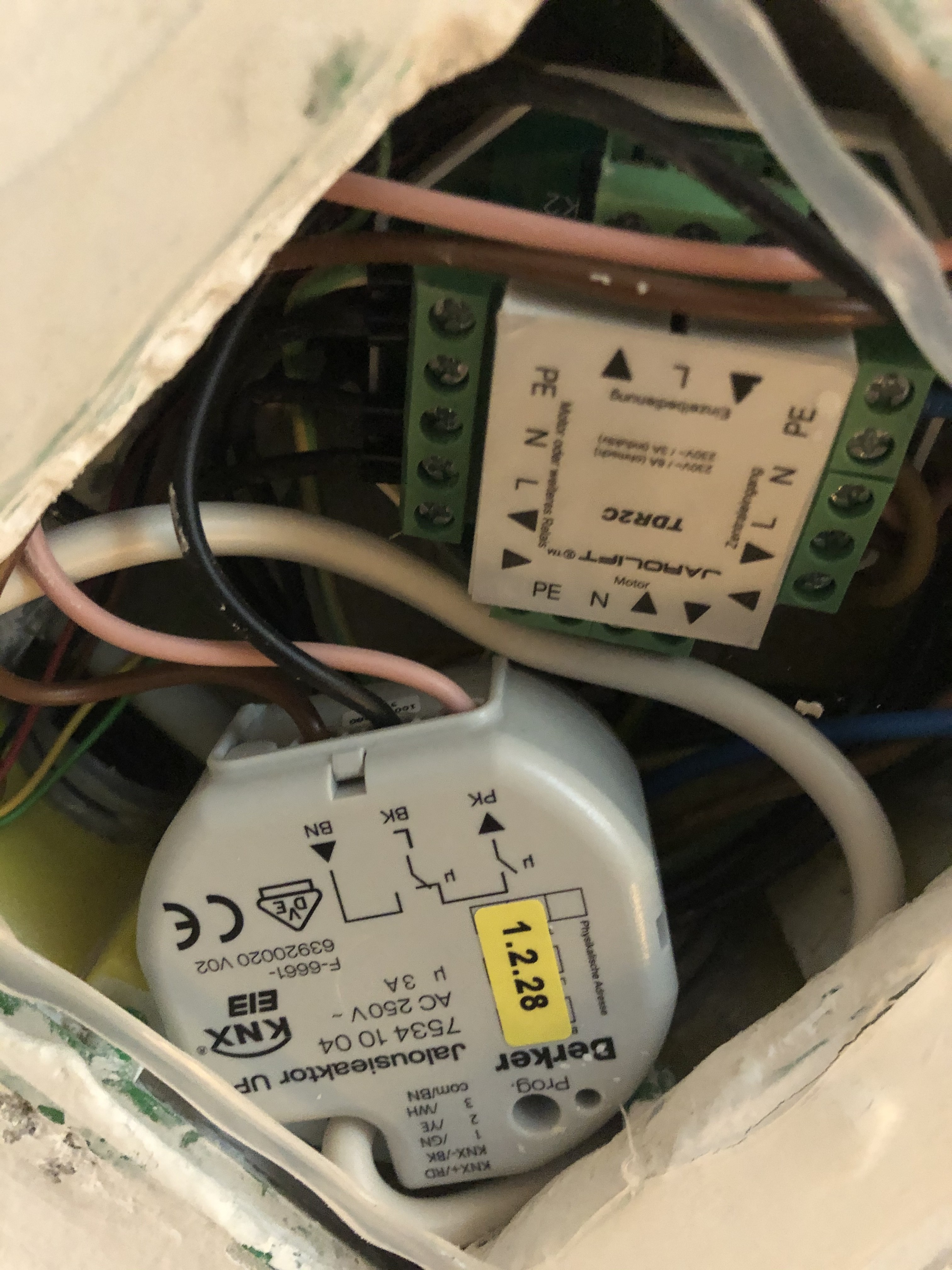 Ich habe bei mir in der Wohnung zwei Sonnenscreens und wurde diese gerne in mein Smarthome einbinden, aktuell verwende ich eine ATV4k als hub, und einen Aqara hub. Die Screens sind zentral gesteuert wenn es zu windig ist fahren sie automatisch hoch, habe jetzt mal die Verkabelung geöffnet um zu sehen wie diese gesteuert werden Siege Foto. Gibt es bei dieser Schaltung einen Lösungsvorschlag gerne erweitere ich auch mein System um eine Homebridge.