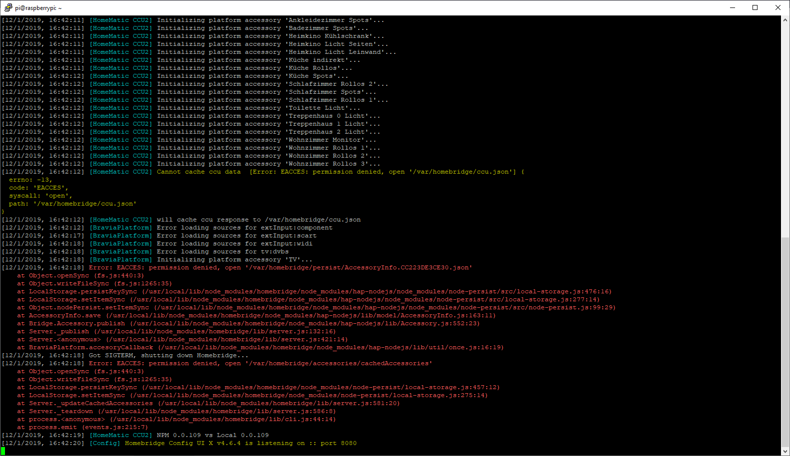 Dec 03 19:45:32 raspberrypi systemd[1]: Stopped Node.js HomeKit Server.