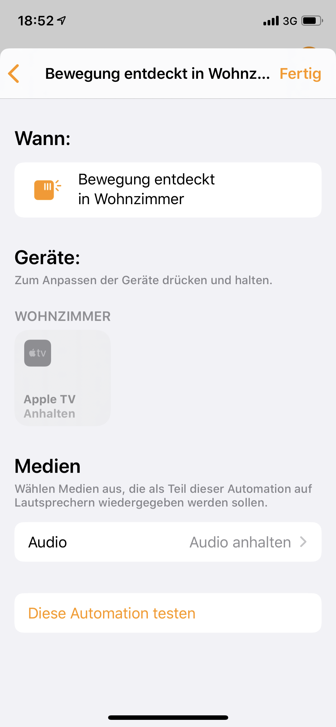 Ich möchte jetzt kein neues Thema eröffnen, aber das gleiche Kommando würde ich auch gerne ausführen, wenn jemand an der Tür klingelt. Einen entsprechenden Sensor habe ich in Homekit eingebunden, die Benachrichtigung auf das Telefon klappt wunderbar. Jetzt hätte ich gerne ebenfalls den Apple TV pausiert, wenn es an der Tür klingelt. Die Steuerung des Apple TV bekomme ich nicht in die Automation innerhalb des Home App untergebracht. Über die "kurzbefehle app" geht es, allerdings stellt sich mir hier die Frage: