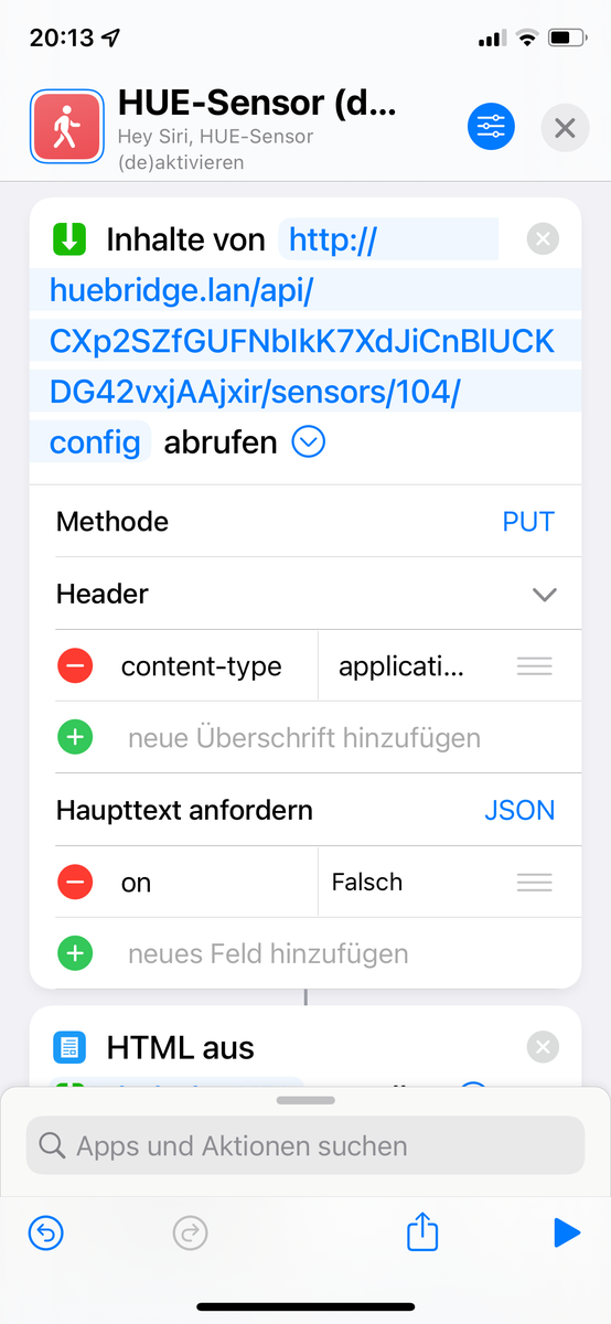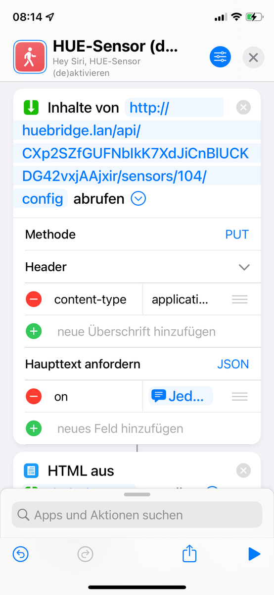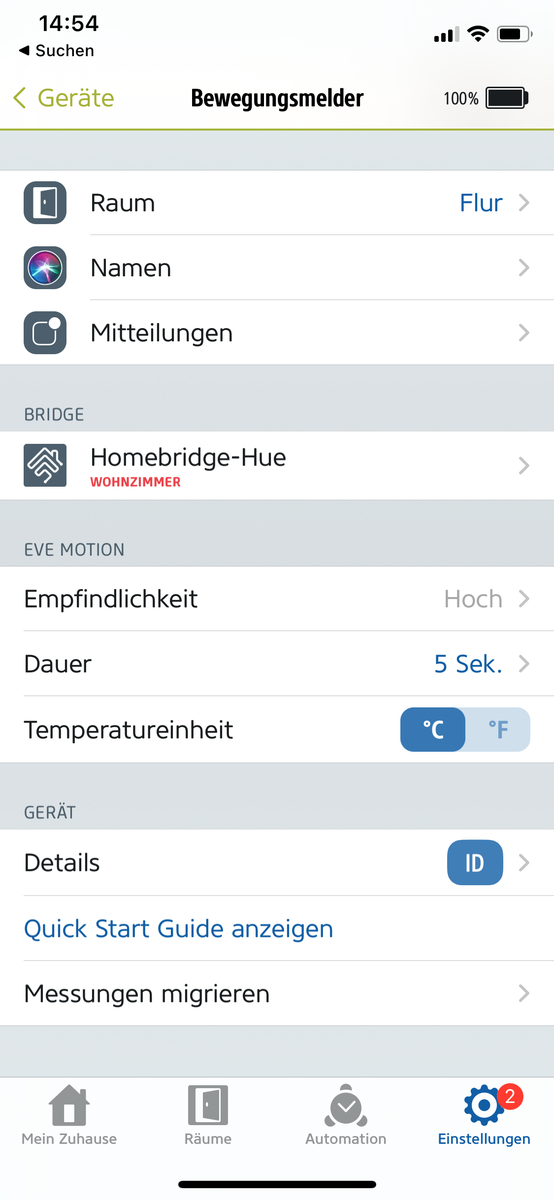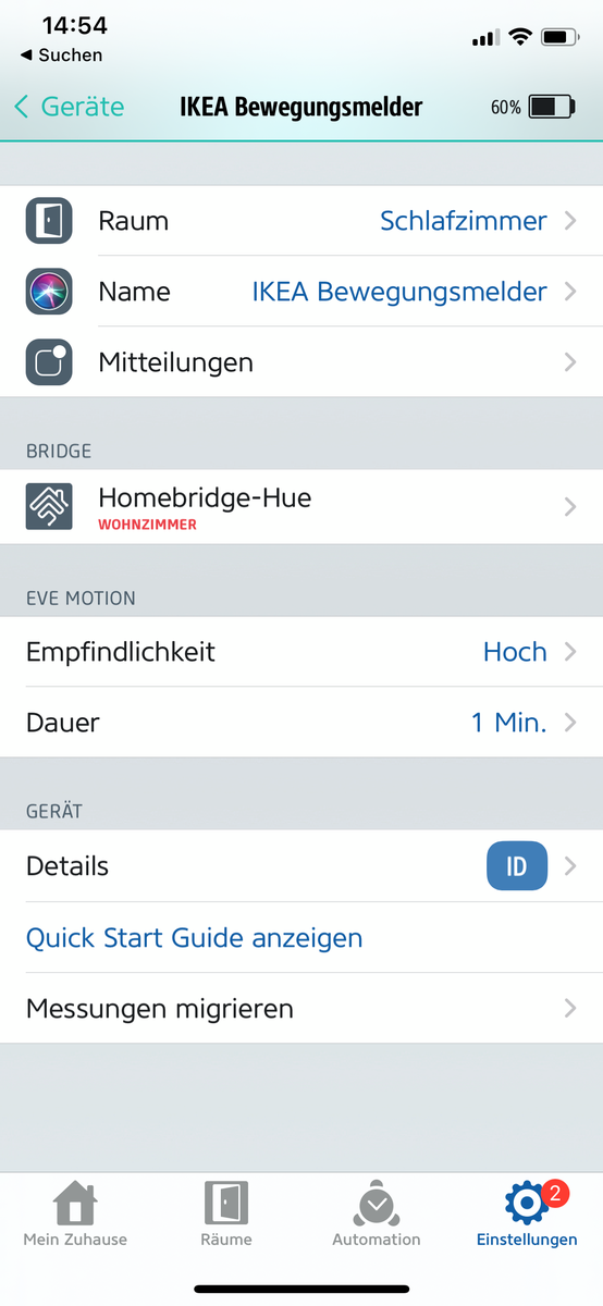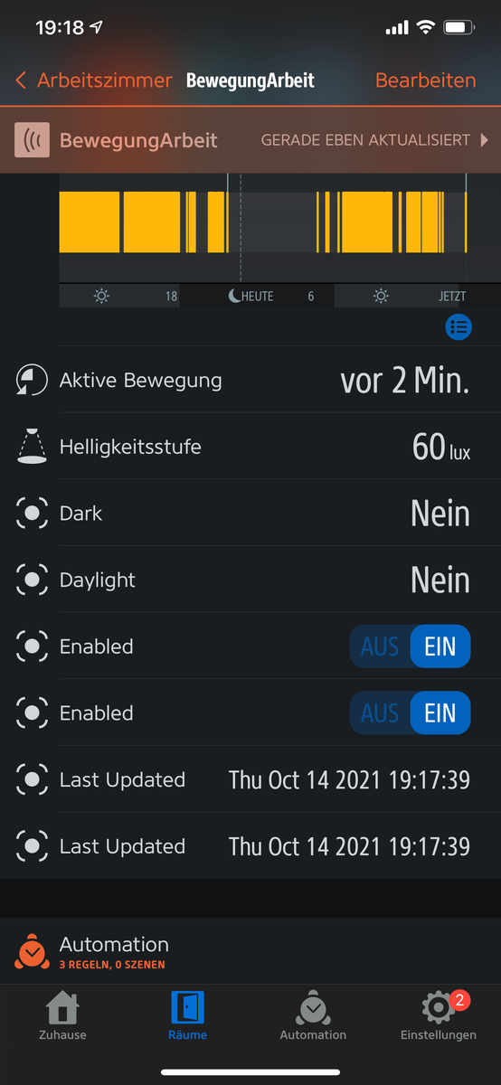 über der erneuten Bewegungserkennung des Hue BM bleibt