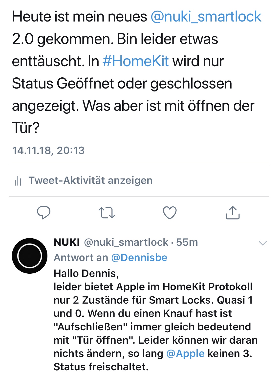 Sie meinten das mit dem namens Zusatz ist ein Problem von HomeKit