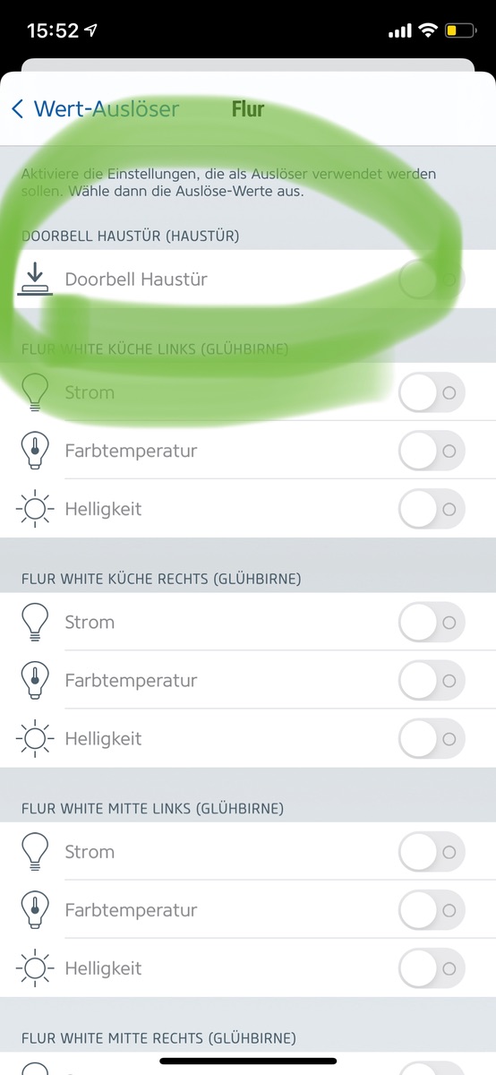 Das habe ich in der Eve-App probiert, aber i.wie funktioniert es bei mir nicht. Kannst du mir sagen wie ich es genau anstellen muss, sodass er beim klingeln ein Licht anstellt ?