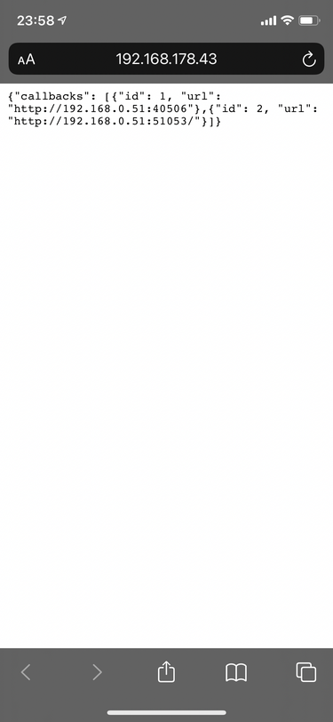 [04/04/2021, 22:56:20] [NukiBridge] Request to Nuki bridge 'http://192.XXX.178.43:8080' finished with status code '200' and body '{"callbacks": [{"id": 0, "url": "http://192.168.0.51:51827/"},{"id": 1, "url": "http://192.XXX.0.51:40506"},{"id": 2, "url": "http://192.XXX.0.51:51053/"}]}'. null