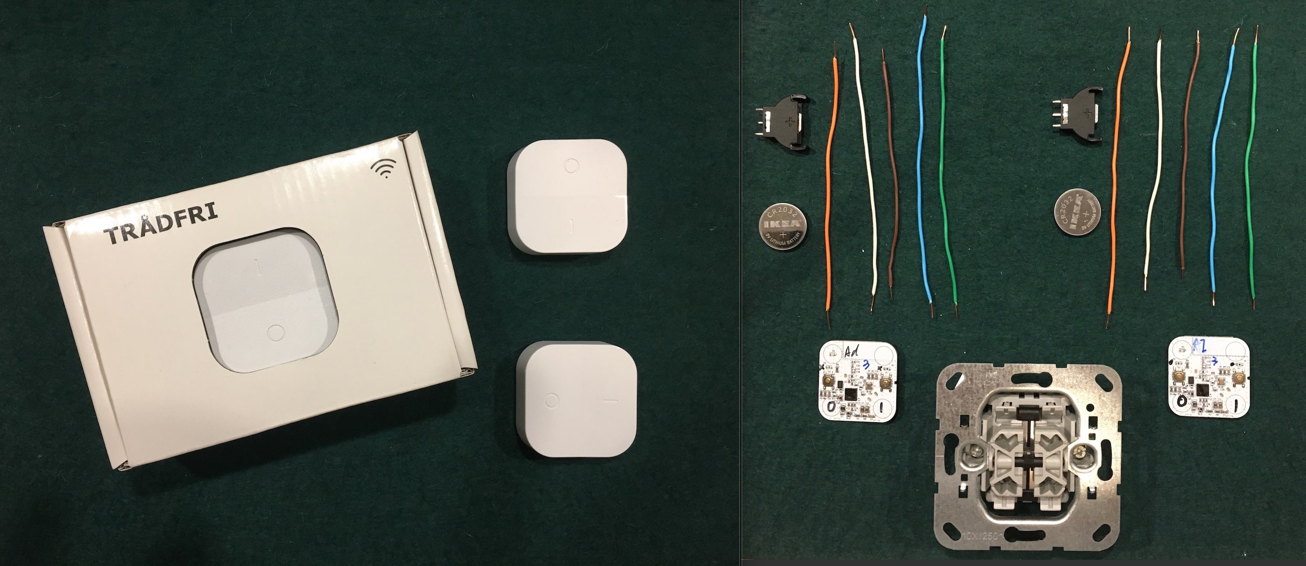 Gira 14700, 2032 Battery holder (generic), 2x Tradfri Dimmer.
