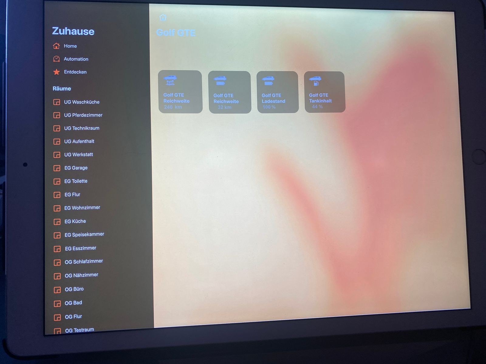 gleiches beim Tankfüllstand - hier werden mir in der Home App 0% angezeigt