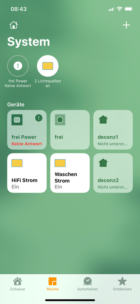 Hi, Ich habe ein zweites System (deconz und Homebridge) in Homekit hinzugefügt, nun erscheint die zweite Bridge in den Gerätefavortiten und ich kann diese nicht ausblenden. Gibt es hier irgendeinen Trick ? (Siehe Bild, deconz1 ist nur im Raum System, deconz2 ist auch in den Favoriten)