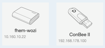 Gerade bin ich auf meinen Pi gegangen (per Browser) und habe mir dessen Webseite (von deCONZ) angesehen. Auf einmal sehe ich nicht nur meinen ConBee II Stick, sondern auch noch ein anderes Gerät: