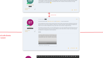 Auch die Breite der einzelnen Posts ist eben jetzt sehr stark limitiert. Statt, dass die volle Breite des Monitors genutzt wird um einen super Überblick zu bekommen, werden Posts jetzt in kleine Kästchen eingestaucht. Macht sich auf mobilen Endgeräten sehr gut, aber eben nicht auf einem richtigen Rechner. Ich glaube es wäre entspannter, wenn es so wäre wie im ersten Screenshot meines Anhangs unten. Das Design und die Farben sind an sich echt gelungen, nur die "Post-Boxen" eben nicht glücklich gelöst, als ob man eben eine mobile Version des Forums auf einem PC aufrufen würde.