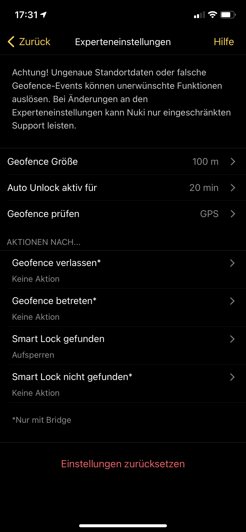 Geofence verlassen: keine Aktion