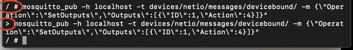 {"Operation":"SetOutputs","Outputs": [{"ID":1, "Action":6, "State":1,}]}