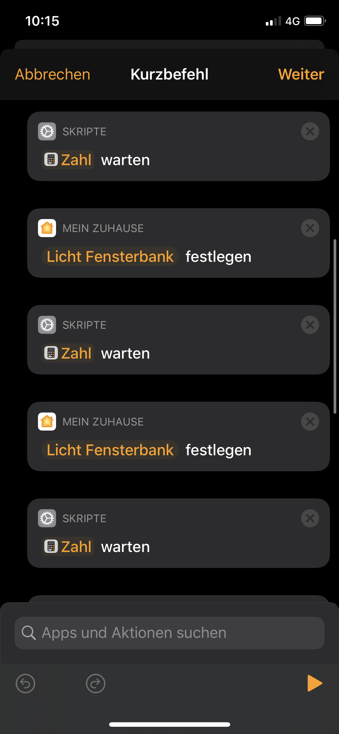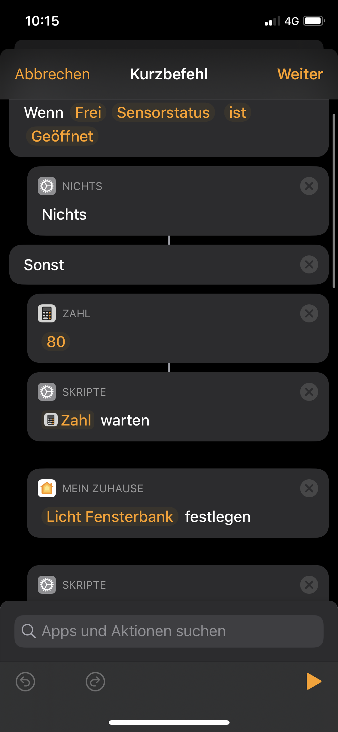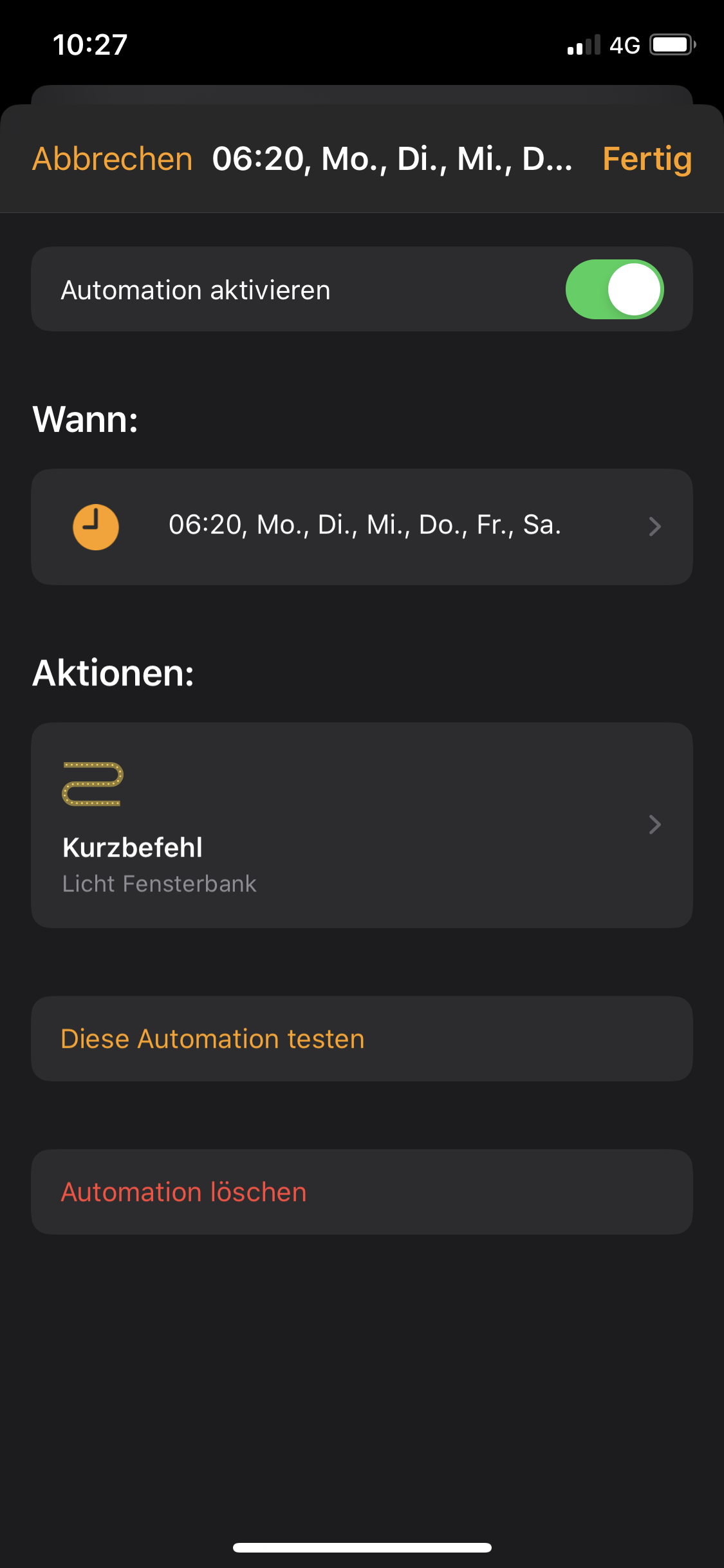 Aber das wäre nur ein Wunschgedanke von mir, wenn ich alles selber per Kurzbefehl an- und ausschalten könnte, wäre das schon eine Erleichterung.