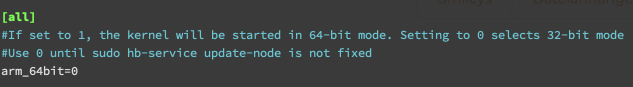 Ihr könnt euch die Änderung der config.txt auch sparen und "n" anweisen die 32bit Variante eurer gewünschten Node Version zu installieren.