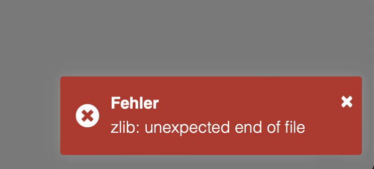Dein Fehlermeldung besagt, dass die Library zlib eine Datei nicht (de)komprimieren kann, weil die Datei nicht vollständig ist. Irgendwie ist ihr das Ende abhanden gekommen. Das passiert oft dann, wenn die komprimierte Datei auf einer zu vollen Festplatte erstellt werden sollte, aber es kann dafür auch andere Gründe geben.