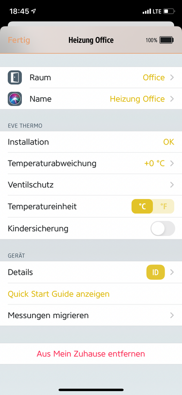 Bei mir auf das Eve Thermo klicken, dann ganz unten auf "Automation" und dort "Fenster-Erkennung"
