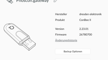 • Die Firmware vom Conbee/Raspbee aktualisiert man am besten über die Phoscon-Weboberfläche oder manuell nach dieser Anleitung: