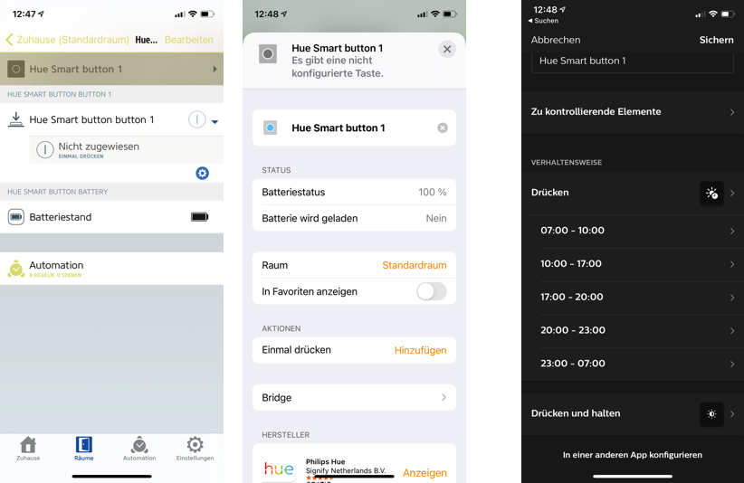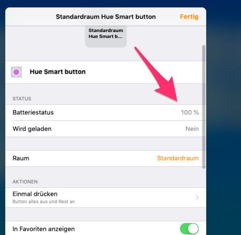 In der Eve und Home App gibt es die Möglichkeit den Hue Smart Button in HomeKit mit "Einmal drücken" zu konfigurieren.