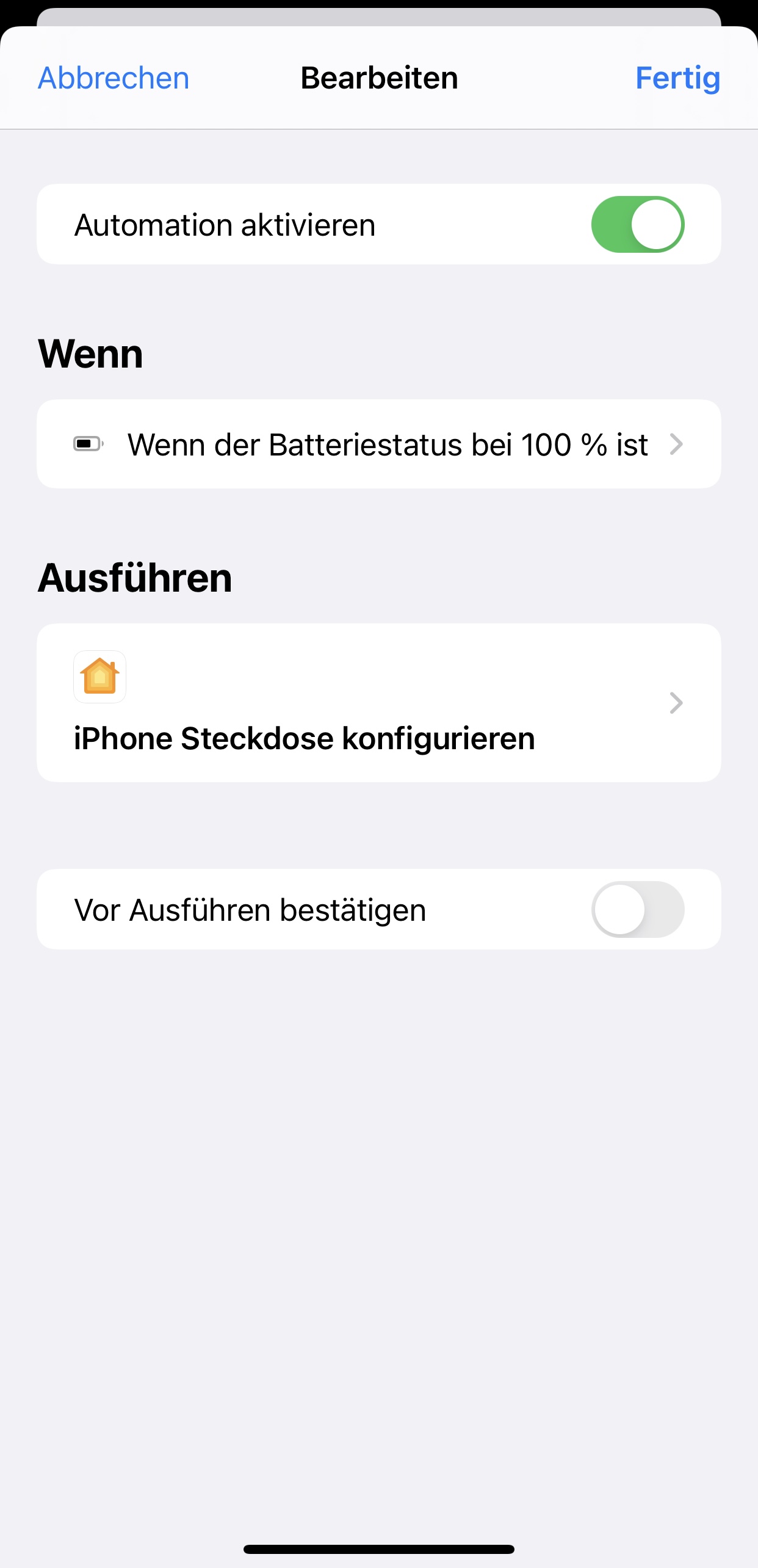 iPhone Akku 100% geladen Steckdose aus - Kurzbefehl