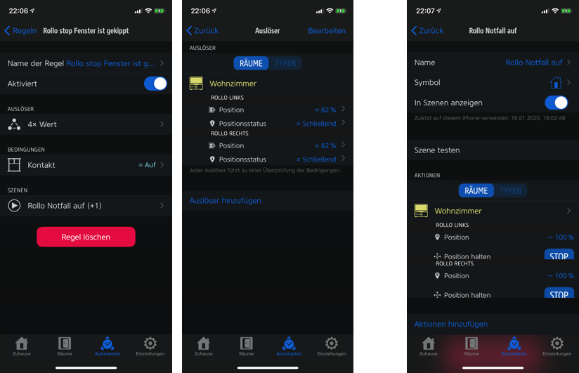 2.regel...wenn Rollo 98% unter der Bedingung Fenster links offen—> fahre hoch