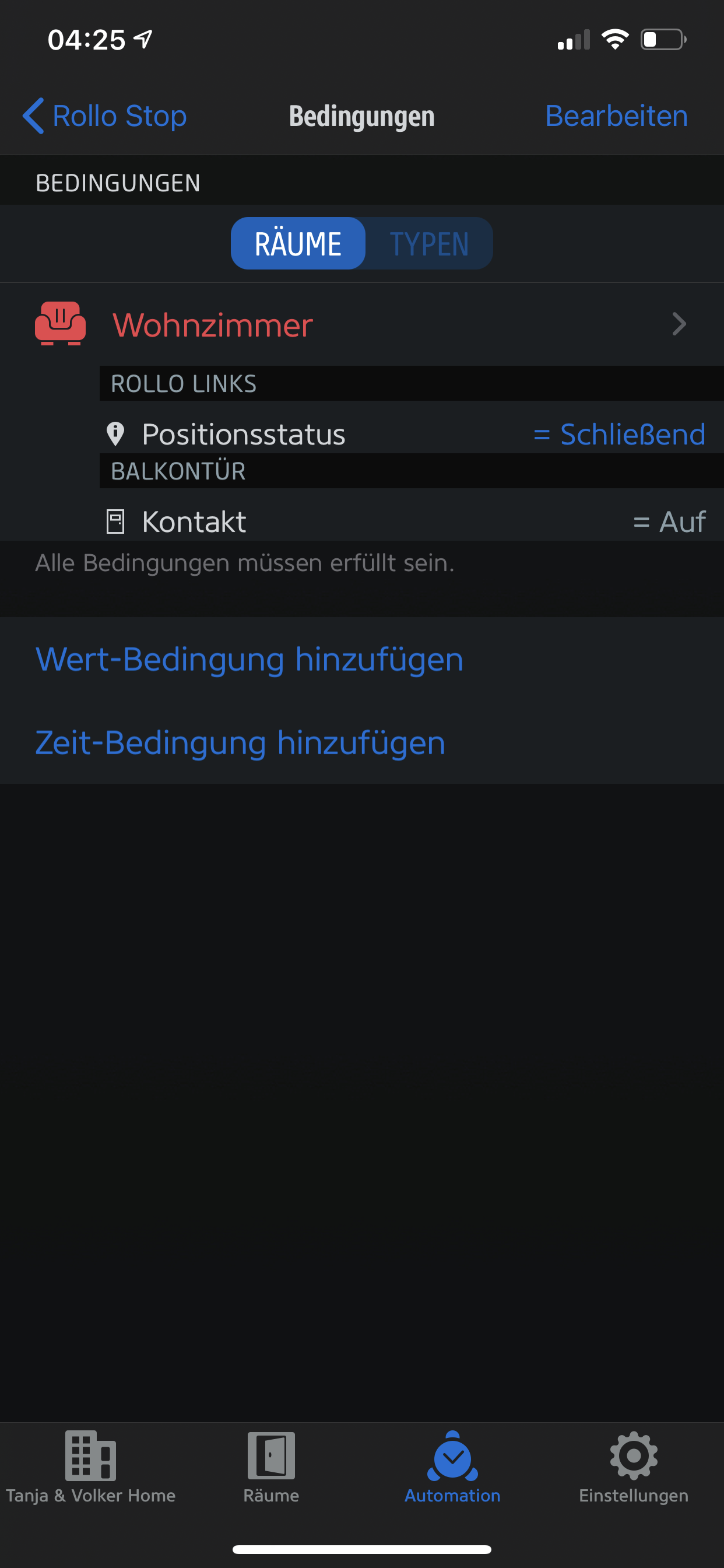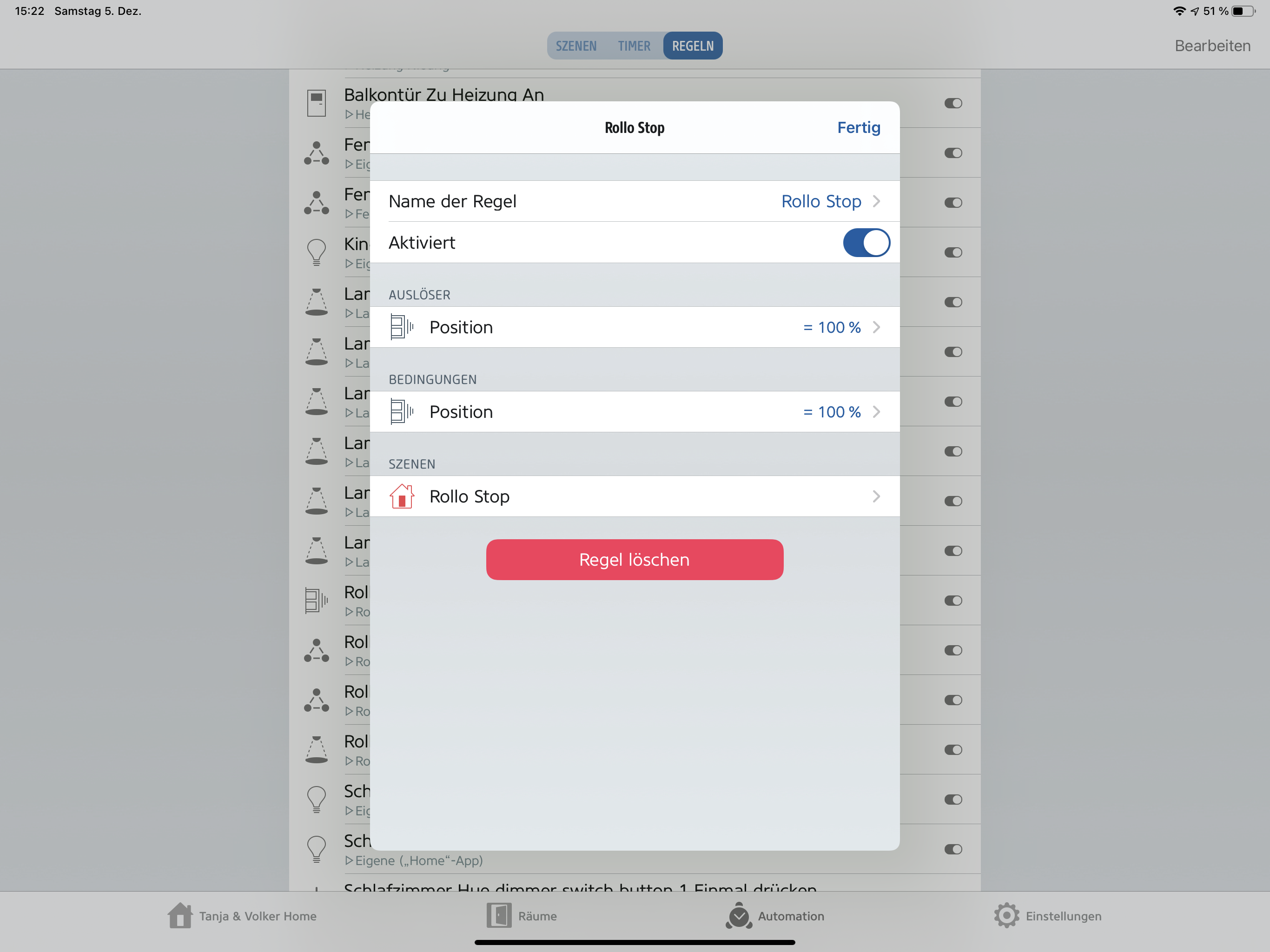 1.regel...wenn Rollo 99% unter der Bedingung Fenster rechts offen—> fahre hoch