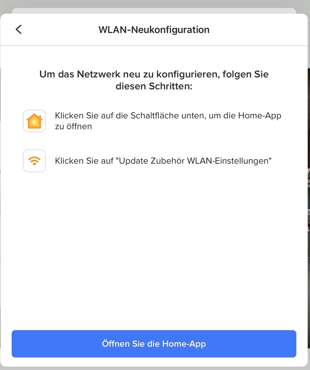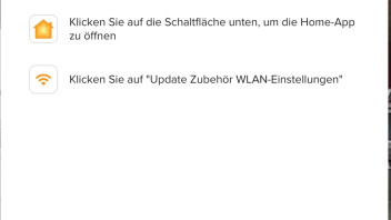 Vielen Dank für die Antwort. Diesen Weg bin ich auch gegangen, und komme dann bis zu folgendem Fenster. Wenn ich dann den unteren Button drücke komme ich auch ins Apple Home und die Netatmo Klingel wird geöffnet, aber es kommt dieses Feld nicht: update Zubehör Wlan-Einstellungen. Und leider hänge ich da seit gestern und finde nirgends Infos.